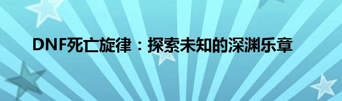 《DNF死亡旋律:探索未知的深渊乐章》这一关键词锁定了玩家们关注的焦点,向我们展示了《DNF》这款游戏背后的丰富内涵和挑战乐趣。在这个过程中,我们不仅可以感受到游戏的紧张刺激和神秘感,还可以体验到与其他玩家的交流合作带来的乐趣。让我们共同探索《DNF》中的死亡旋律,揭开未知深渊的神秘面纱吧!