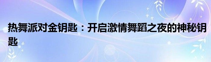 热舞派对金钥匙:开启激情舞蹈之夜的神秘钥匙