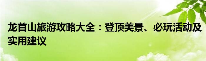 龙首山旅游攻略大全:登顶美景、必玩活动及实用建议