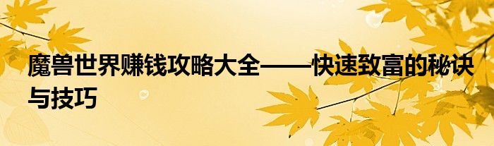魔兽世界赚钱攻略大全——快速致富的秘诀与技巧