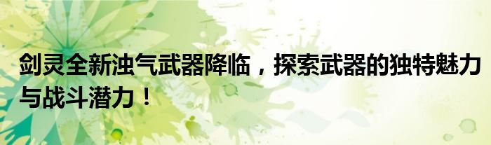 剑灵全新浊气武器降临,探索武器的独特魅力与战斗潜力!