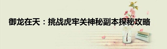 挑战虎牢关副本是《御龙在天》游戏中的重要环节,希望本文的攻略能帮助玩家顺利通关,享受游戏的乐趣。