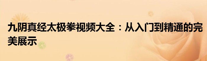 九阴真经太极拳视频大全:从入门到精通的完美展示