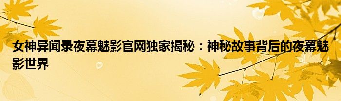 女神异闻录夜幕魅影官网独家揭秘:神秘故事背后的夜幕魅影世界