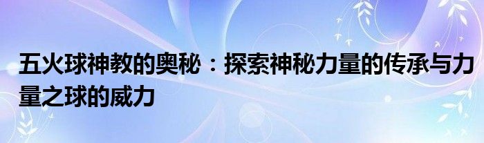 五火球神教的奥秘:探索神秘力量的传承与力量之球的威力