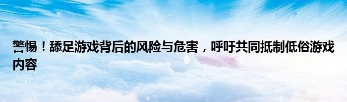 警惕!舔足游戏背后的风险与危害,呼吁共同抵制低俗游戏内容
