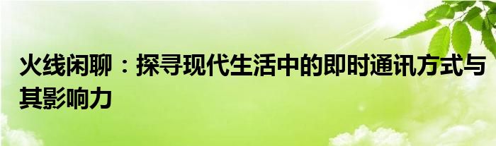 火线闲聊:探寻现代生活中的即时通讯方式与其影响力