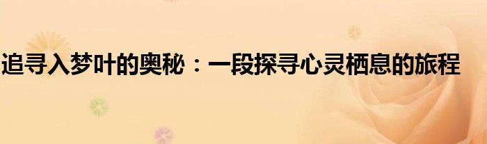 追寻入梦叶的奥秘:一段探寻心灵栖息的旅程