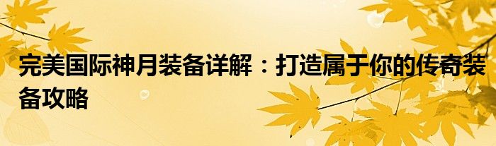 完美国际神月装备详解:打造属于你的传奇装备攻略
