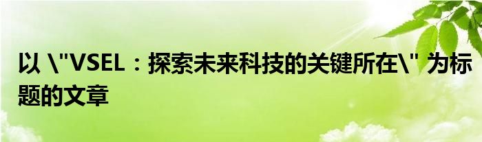 以 "VSEL:探索未来科技的关键所在" 为标题的文章