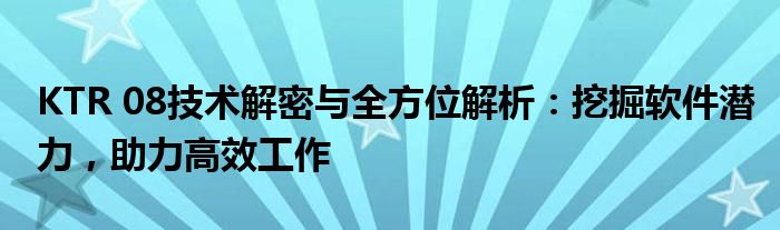 KTR 08技术解密与全方位解析:挖掘软件潜力,助力高效工作