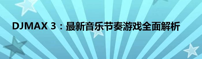 本文将全面解析最新音乐节奏游戏——“DJMAX 3”。作为一款深受玩家喜爱的音乐游戏系列,DJMAX 3继承了前作的优秀元素,并加入了更多创新内容。
