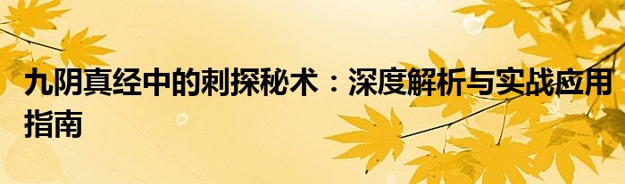 九阴真经中的刺探秘术:深度解析与实战应用指南