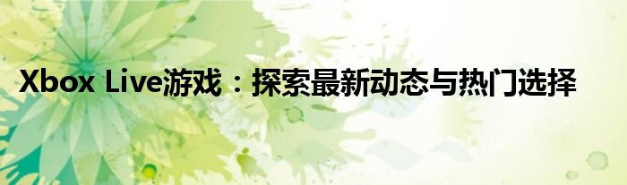 总之,Xbox Live游戏为全球玩家提供了一个充满乐趣和挑战的游戏世界。无论你是喜欢哪种类型的游戏,都能在这里找到适合自己的那一款。希望本文能为你带来最新的游戏动态和热门选择,让你更好地了解这个精彩的游戏世界。