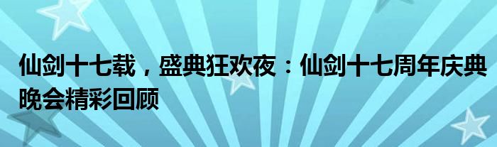 仙剑十七载,盛典狂欢夜:仙剑十七周年庆典晚会精彩回顾