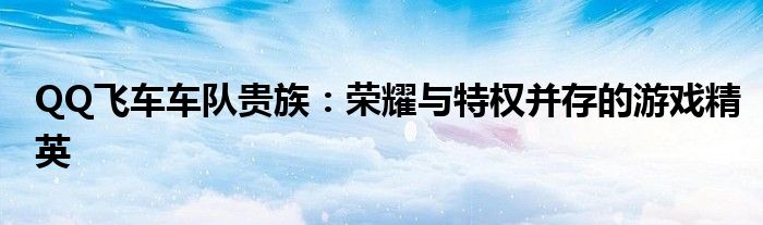 QQ飞车车队贵族:荣耀与特权并存的游戏精英