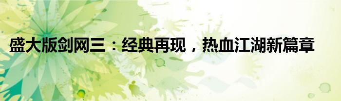 盛大版剑网三作为一款经典的角色扮演游戏,一直以来都受到众多玩家的热爱和追捧。游戏在继承了剑网系列经典元素的基础上,加入了更多的创新内容和玩法,为玩家带来了全新的游戏体验。