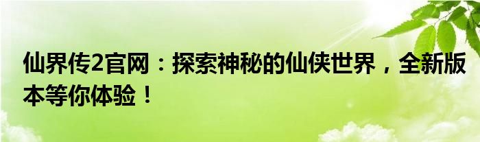 仙界传2官网:探索神秘的仙侠世界,全新版本等你体验!