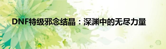 在《地下城与勇士》(DNF)这款备受瞩目的游戏中,有一种极为特殊的存在,那就是“特级邪念结晶”。它深藏于游戏世界的各个角落,如同深渊中的无尽力量,让无数玩家为之疯狂。