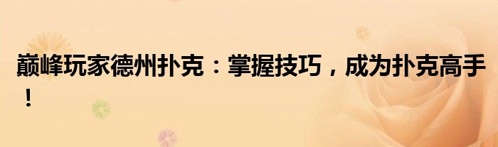 巅峰玩家德州扑克:掌握技巧,成为扑克高手!
