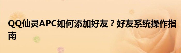 QQ仙灵APC如何添加好友?好友系统操作指南