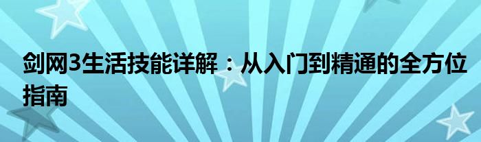 本文将详细介绍剑网3中的生活技能系统,帮助新手玩家快速了解并掌握各项生活技能的运用,同时让资深玩家能够进一步提升他们的技能水平。本文将涵盖以下主要