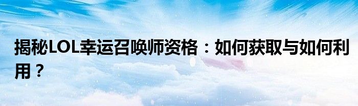 揭秘LOL幸运召唤师资格:如何获取与如何利用?
