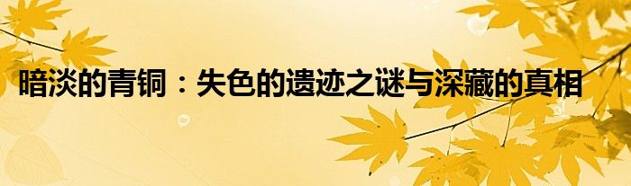 暗淡的青铜:失色的遗迹之谜与深藏的真相