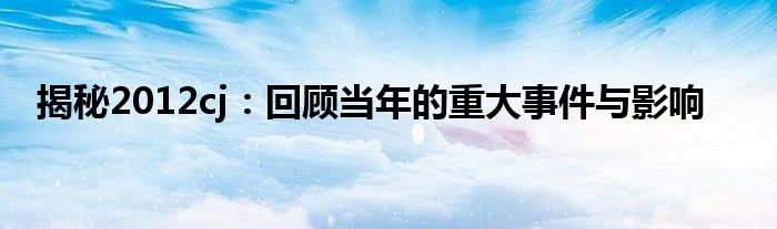 本文将带您回顾并揭秘关键词“2012cj”背后的重大事件和影响。作为过去十年中的一个重要年份,“2012cj”承载了许多历史事件和社会变迁的印记。通过本文,我们将一同回忆那些值得铭记的瞬间。