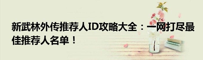 新武林外传推荐人ID攻略大全:一网打尽最佳推荐人名单!