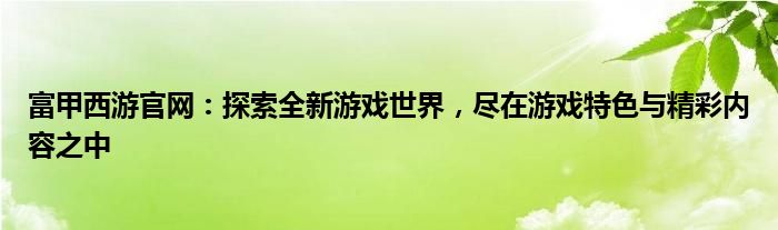 随着科技的进步和娱乐方式的多样化,游戏已经成为人们生活中不可或缺的一部分。而富甲西游官网作为一款备受瞩目的游戏平台,为广大玩家提供了丰富的游戏资源和独特的游戏体验。本文将围绕富甲西游官网展开介绍,带您领略其游戏特色与精彩内容。