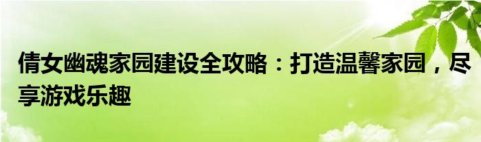 倩女幽魂家园建设全攻略:打造温馨家园,尽享游戏乐趣