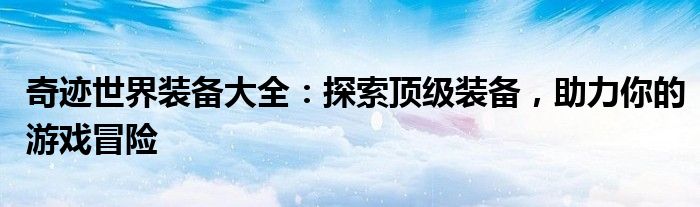 奇迹世界装备大全:探索顶级装备,助力你的游戏冒险