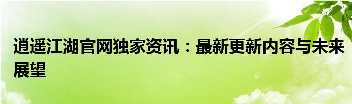 逍遥江湖官网独家资讯:最新更新内容与未来展望