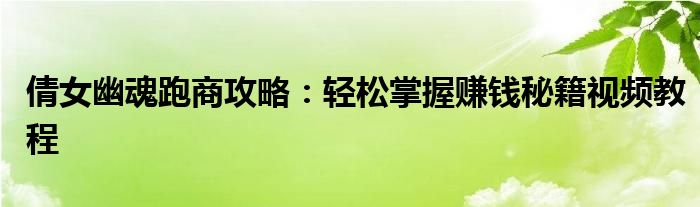 倩女幽魂跑商攻略:轻松掌握赚钱秘籍视频教程