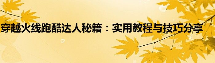 穿越火线跑酷达人秘籍:实用教程与技巧分享