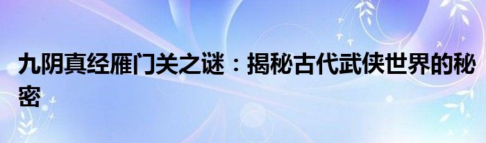 九阴真经雁门关之谜:揭秘古代武侠世界的秘密