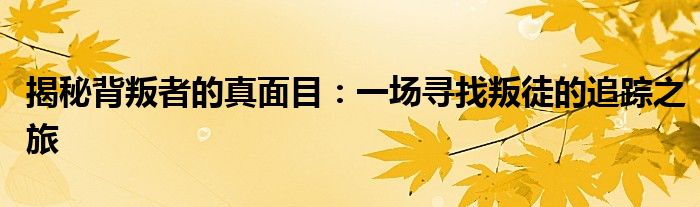 揭秘背叛者的真面目:一场寻找叛徒的追踪之旅