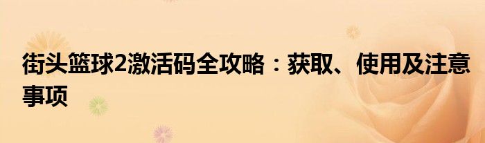 街头篮球2激活码全攻略:获取、使用及注意事项
