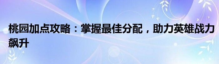 桃园加点攻略:掌握最佳分配,助力英雄战力飙升