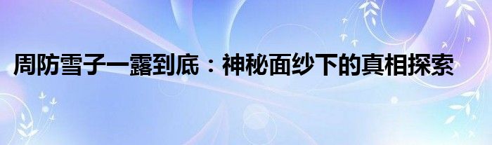 本文将围绕“周防雪子一露到底”这一主题展开,深入探讨其背后的故事与真相。我们将从多个角度进行剖析,揭示这一关键词背后的神秘面纱。