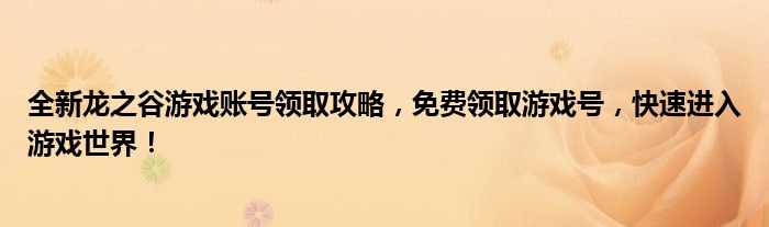 全新龙之谷游戏账号领取攻略,免费领取游戏号,快速进入游戏世界!