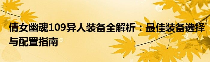 以上就是关于《倩女幽魂》109级异人装备的全面解析。希望本文能对大家在选择装备时提供帮助。在游戏中,不断尝试和调整装备配置,找到最适合自己的装备组合,才能更好地提升战斗能力。祝大家游戏愉快!