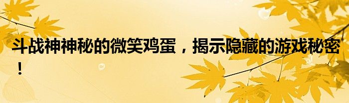 斗战神神秘的微笑鸡蛋,揭示隐藏的游戏秘密!
