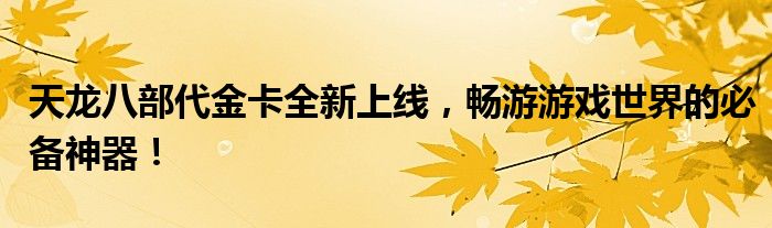 天龙八部代金卡全新上线,畅游游戏世界的必备神器!