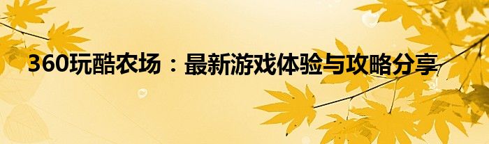本文将为您介绍和分享关于“360玩酷农场”的最新游戏体验以及攻略。