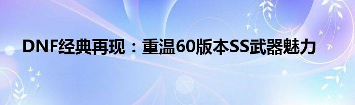 重温DNF 60版本的SS武器,让我们再次感受到那份对游戏的热爱和激情。那些曾经的挑战和努力,那些获得的成就和喜悦,都成为了我们宝贵的回忆。如今,让我们一起回味那些经典时刻,再次体验游戏的魅力。