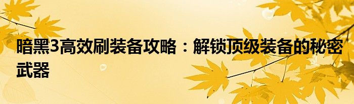 暗黑3高效刷装备攻略:解锁顶级装备的秘密武器