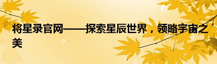 欢迎您加入将星录官网,与我们一同探索宇宙的奥秘,领略星辰之美。让我们共同追寻星辰的足迹,开启一段奇妙的宇宙之旅!