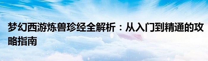 本文将全面解析梦幻西游中的炼兽珍经系统,为玩家提供从入门到精通的全方位攻略。我们将涵盖炼兽珍经的基本概念、获取途径、合成方法、属性加成以及使用技巧等方面,帮助玩家更好地理解和运用这一系统,提升游戏体验和角色实力。